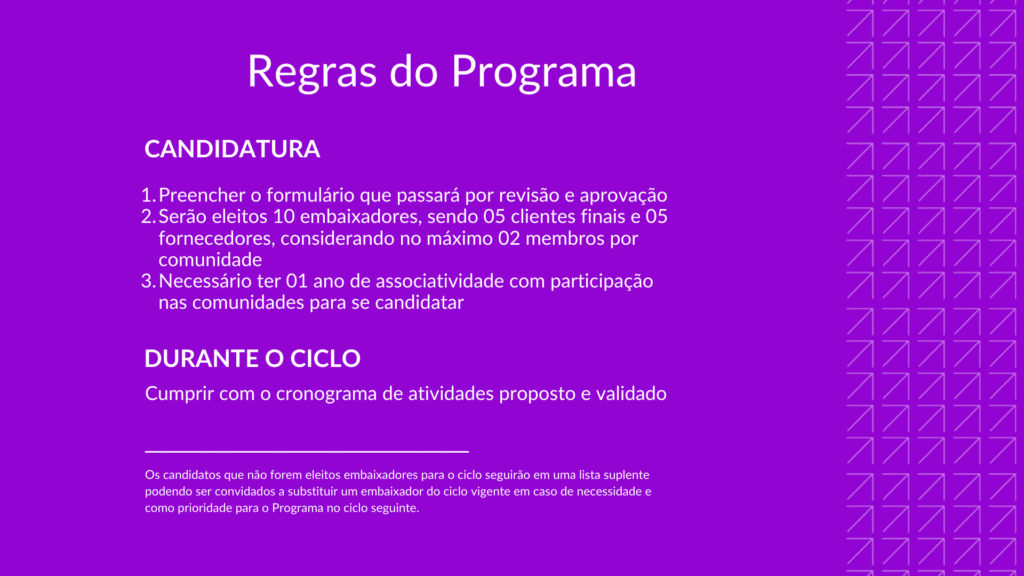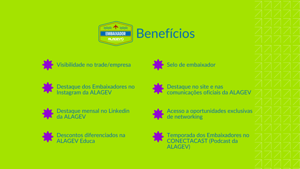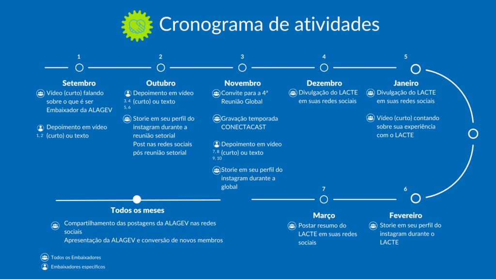 Inscreva-se para o 3º Ciclo de embaixadores até o dia 18/09 às 18:00. O anúncio dos novos embaixadores será realizado durante a 3ª Reunião Global das Comunidades ALAGEV, no dia 22/09.
